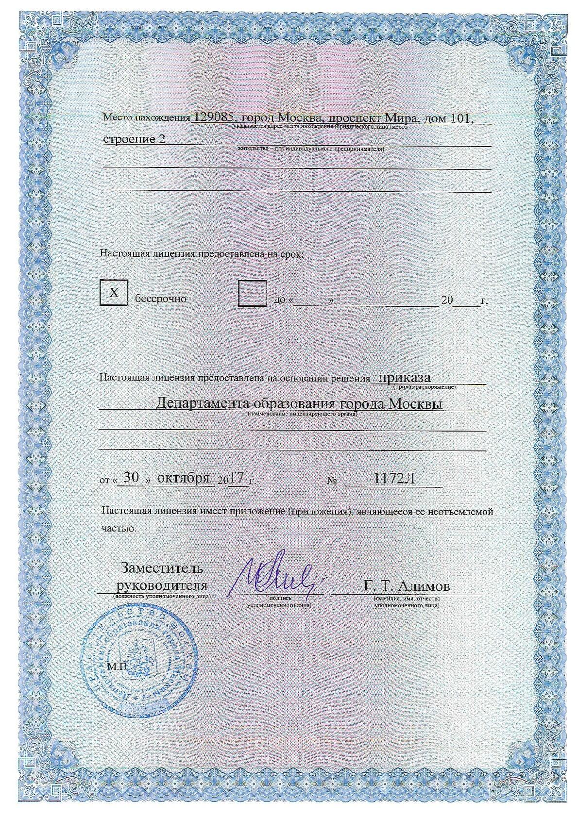 Образовательная деятельность Московской академии медицинского образования реализуется на основе полного соответствия нормам российского законодательства. Официальный статус учреждения подтверждается действующей лицензией, которая свидетельствует о признании государством профессиональной компетентности организации в сфере подготовки специалистов и реализации программ дополнительного образования.